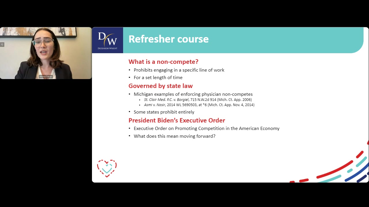 In this webinar, Kim Ruppel and Emma Trivax walk participants through how to avoid potential pitfalls involving non-compete agreements. This webinar will be of particular importance to risk management officers, healthcare attorneys, and HR executives whose responsibilities include drafting contracts, managing litigation, and minimizing potential liability.
