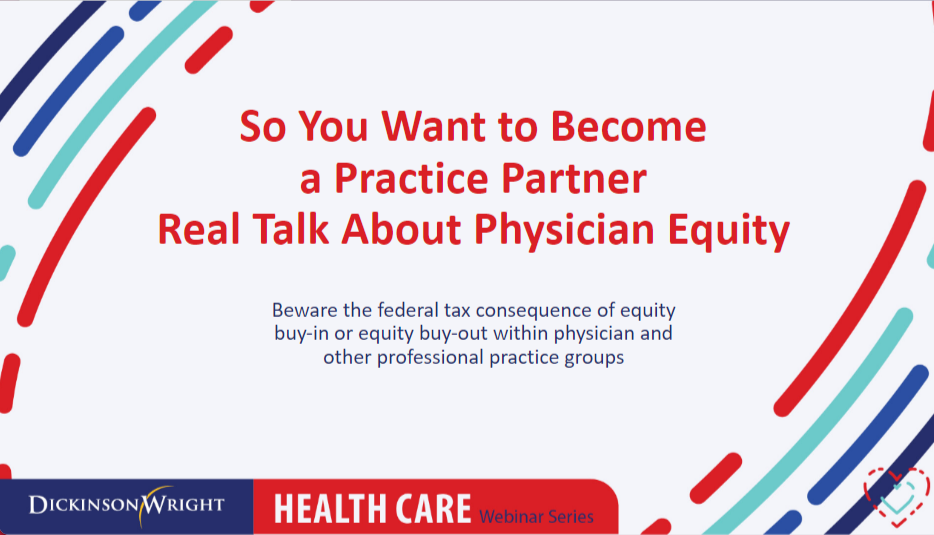 Join us Thursday, August 17, 2023 at 2:00 p.m. ET, for an exclusive webinar, "So You Want to Become a Practice Partner? Real Talk about Physician Equity." This event is designed specifically for accountants, practice group managing partners, and financial advisors who work with existing physician, dental, and other medical practice groups.
