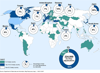 The recommendations contained in a July 2019 report from the U.S. Government Accountability Office (GAO) entitled, “Nonimmigrant Investors: Actions Needed to Improve E-2 Visa Adjudication and Fraud Coordination,” are already being felt at the consular application level with more to be expected in 2020. The report included the following chart regarding E visa use: