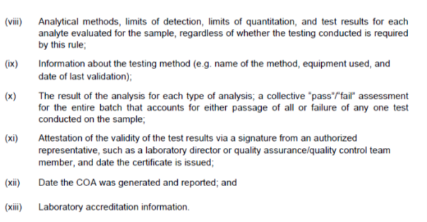 Regulators also emphasized that COAs must come from ISO17025 accredited laboratories registered with the TABC, and must include full panel results for potency, heavy metals, microbiological contaminants, pesticides, and residual solvents and an authorized lab signature.