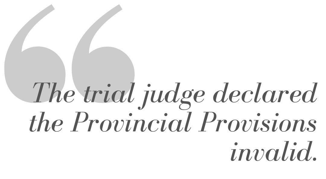 The trial judge declared the Provincial Provisions invalid. In arriving at this decision, the trial judge found that the pith and substance of the Provincial Provisions were to allow Loto-Québec to force ISPs to block access by individuals in Québec to online gambling sites it deems illegal, not to protect consumers. According to the trial judge, that pith and substance could not be validly linked to any legislative powers of the province in matters of consumer protection, health, gambling, or any other matter of local or private nature. Rather, such actions fell within areas of exclusive federal jurisdiction, namely telecommunications and criminal law. In addition, the trial judge noted that recognizing a federal-provincial “dual aspect” in the operation of a telecommunications network or in the penalties applicable to online sites not operated by the province would require that both the federal government and the provinces be able to legislate in this regard. However, the trial judge stated that recognizing a dual aspect in those matters would run counter to the precedents confirming federal jurisdiction with respect to telecommunications systems and criminal law, including Johnson v. AG of Alberta[6] and Toronto (Corp. of the City of) v. Bell Telephone Co. of Canada (1904)[7]. Consequently, the double aspect theory could not apply. Finally, the trial judge held that the theory of ancillary powers does not make it possible to safeguard the constitutional validity of the Provincial Provisions given the breadth of its encroachment onto federal powers. Therefore, the contested provisions could not be saved, and the Superior Court granted the Association’s application for a declaration of invalidity.