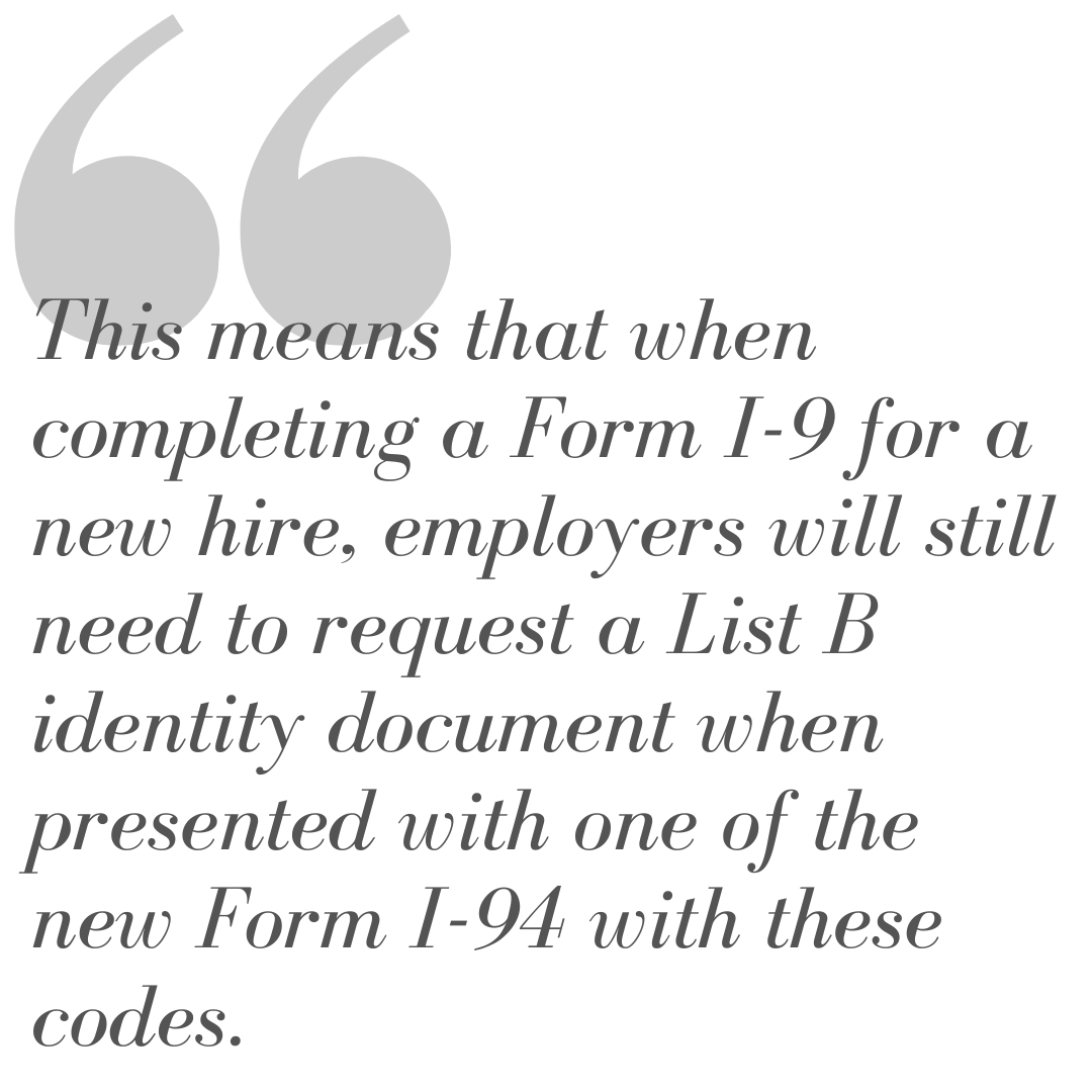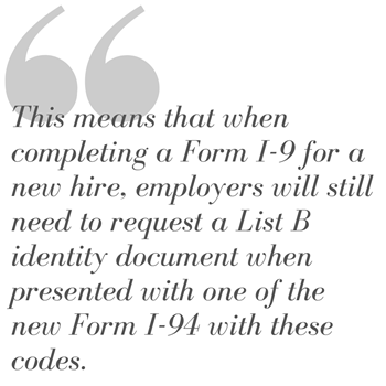 Form I-9 Alert - USCIS Designates I-94s with New Admission Codes For E and L Spouses as List C Documents... What?
