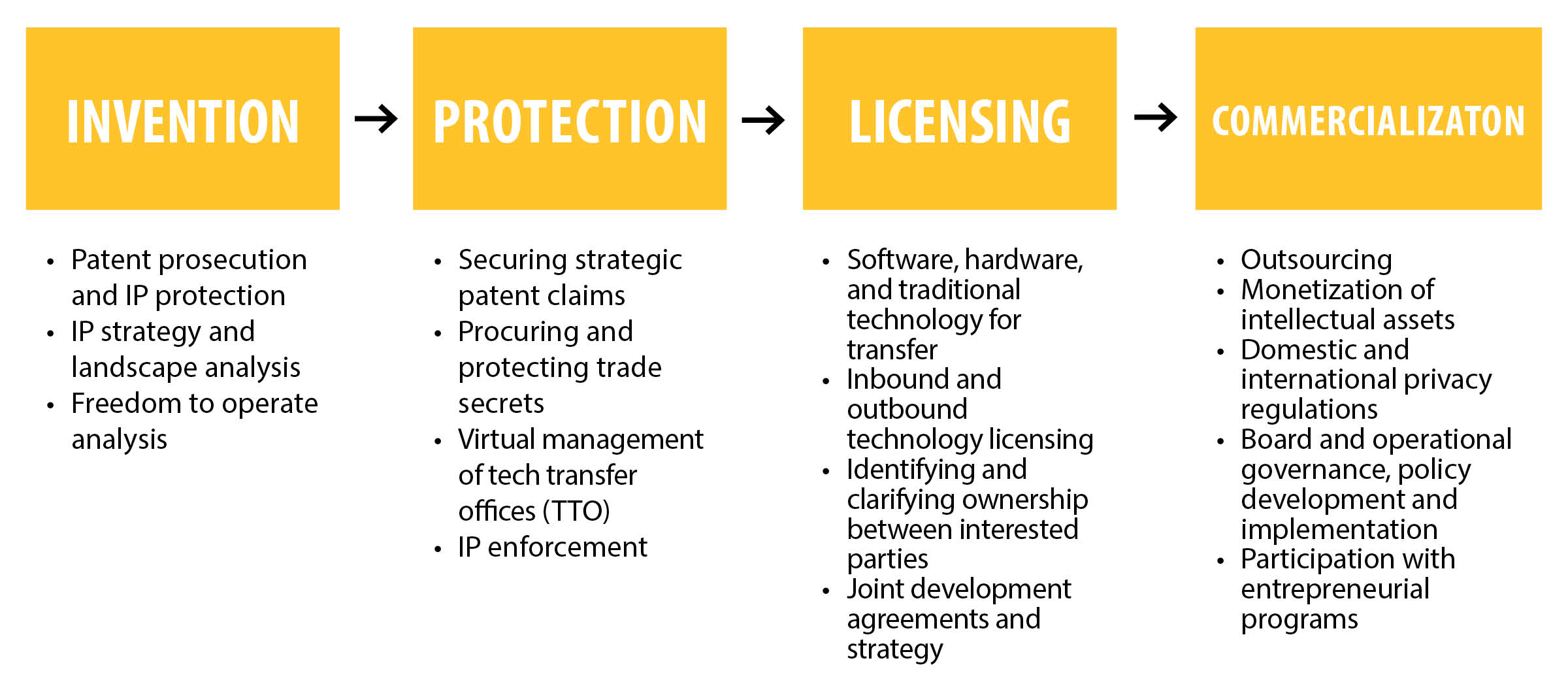The technology transfer function within the academic and research-based ecosystem is crucial in converting modern advances into profitable business solutions. From traditional research and development to strategic exit, successful commercialization requires careful and precise execution within a heightened high risk/reward profile.